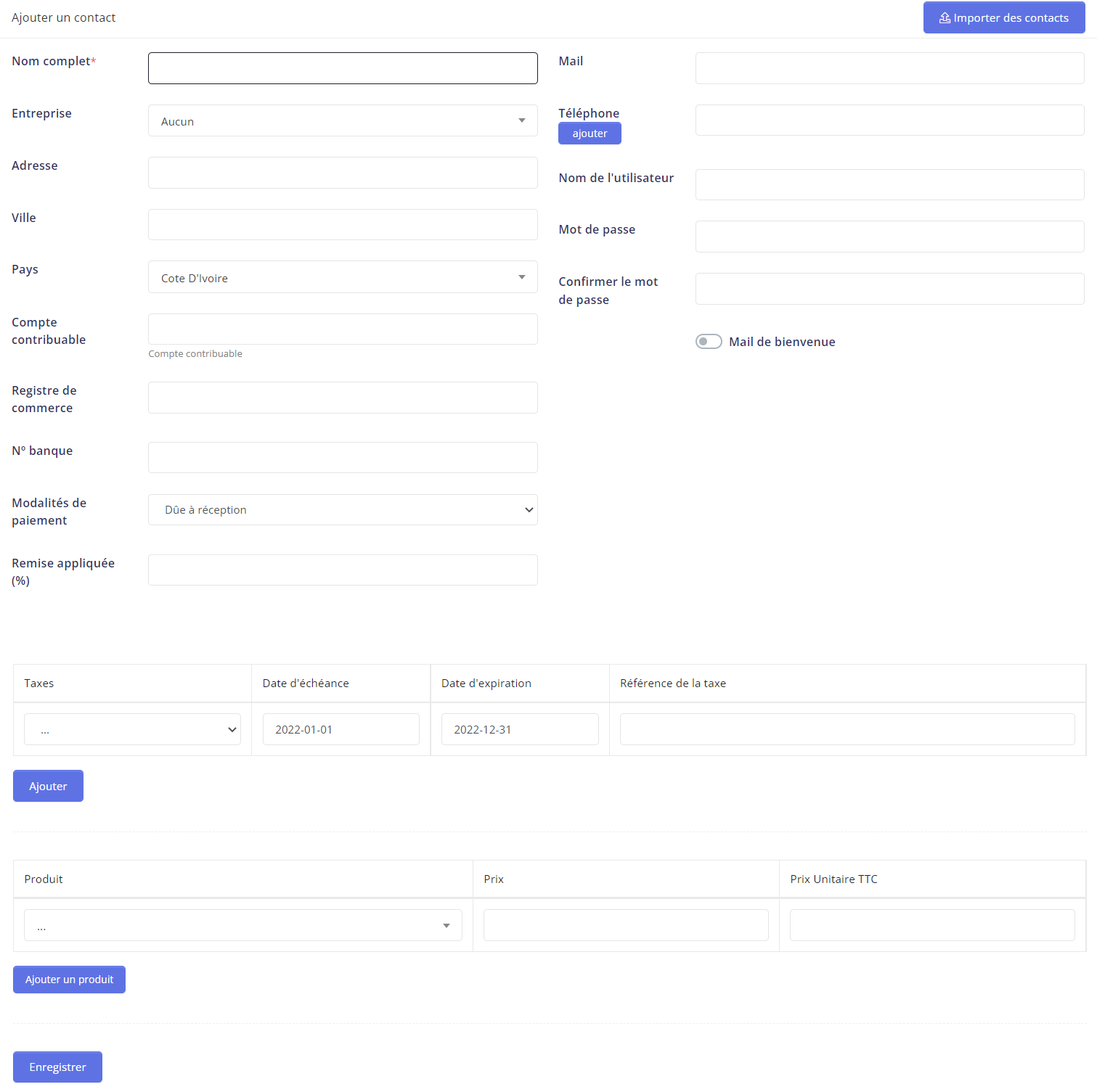 - Step 2: Lors de la création d'un client, le seul champ obligatoire est "Nom complet", vous pouvez ajouter des informations supplémentaires à tout moment.