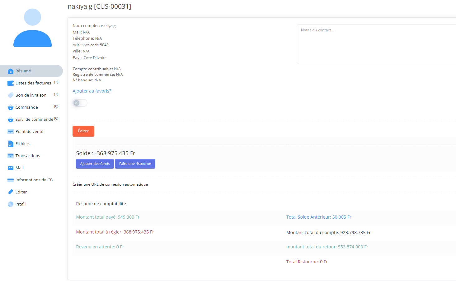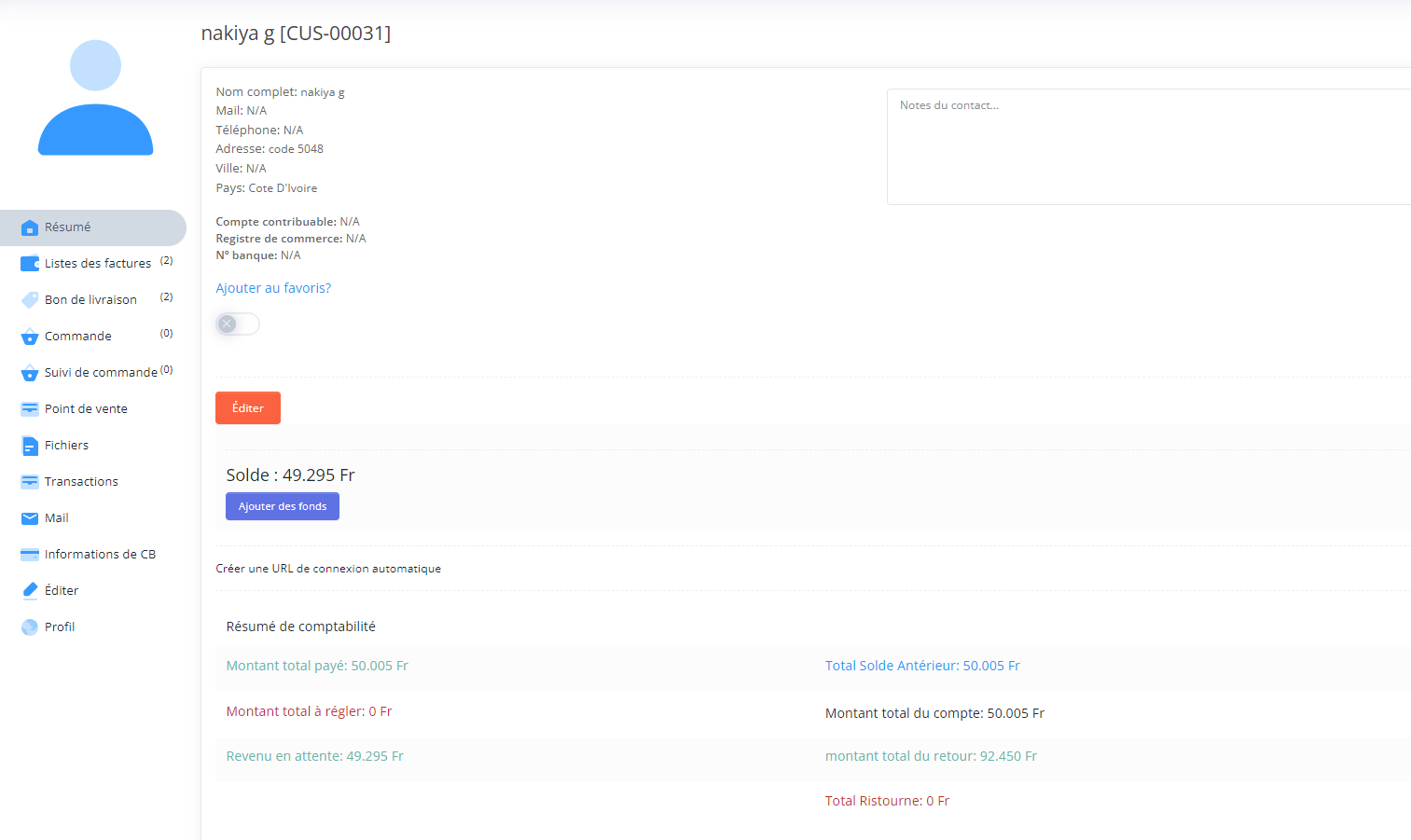 - Step 1: Pour ajouter des fonds a un client vous devez allez dans Liste des clients → relevée de compte du client → Ajouter des fonds.
