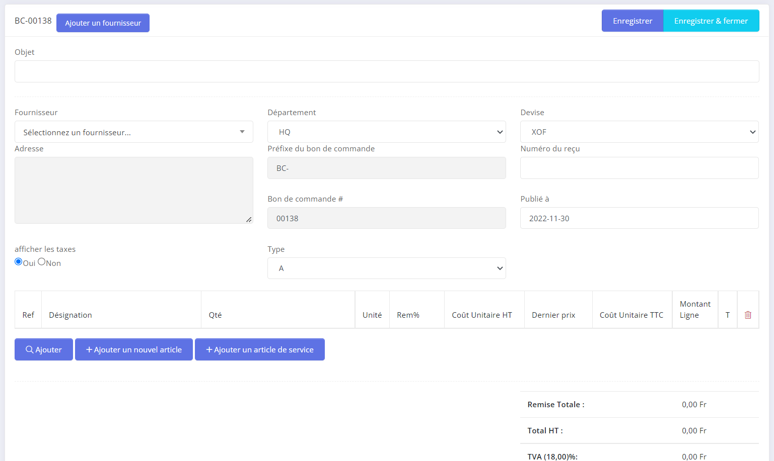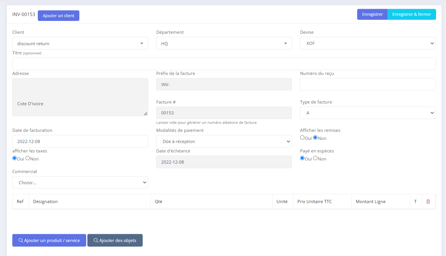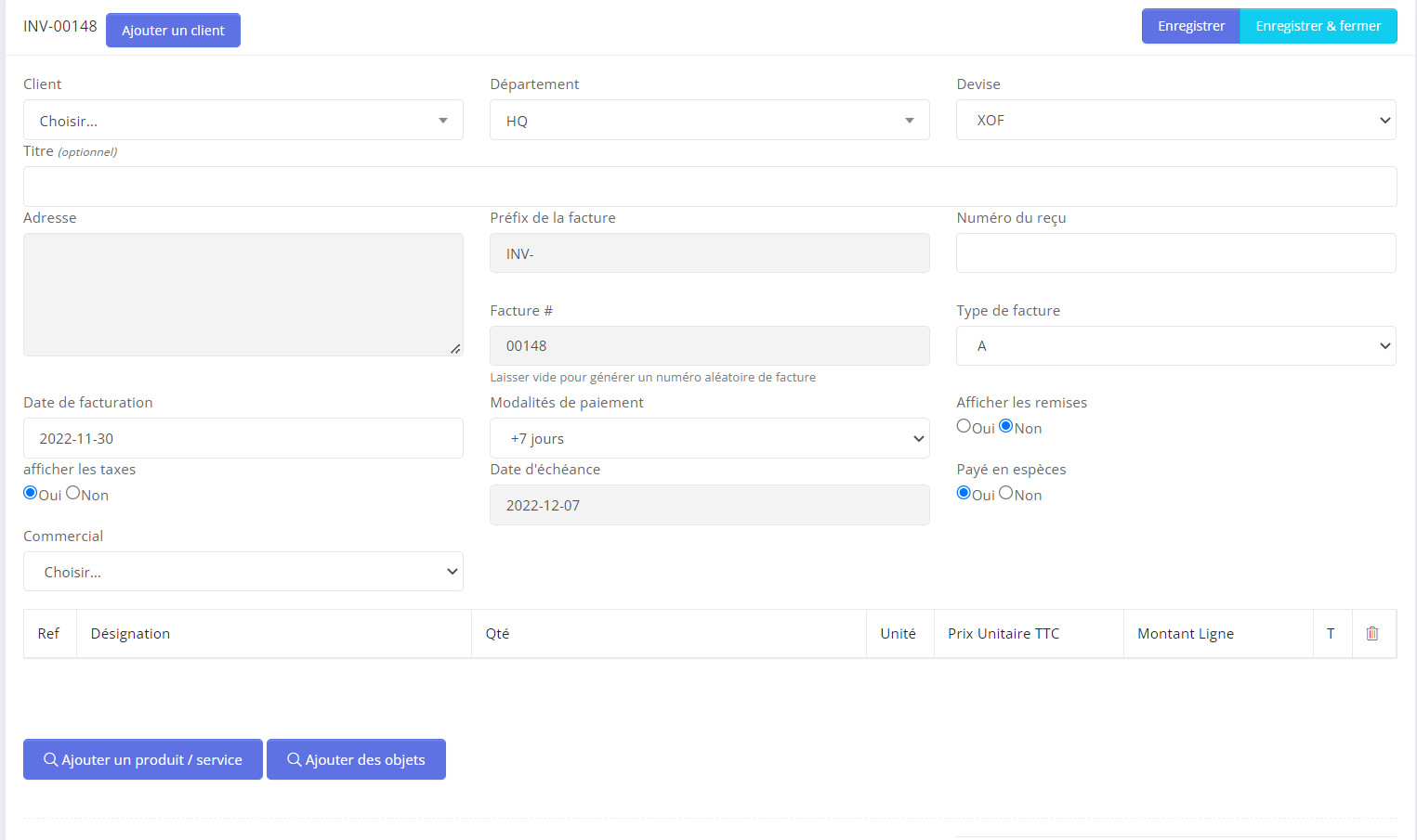 - Step 5: Ajouter des articles /services avec la quantité et le prix.