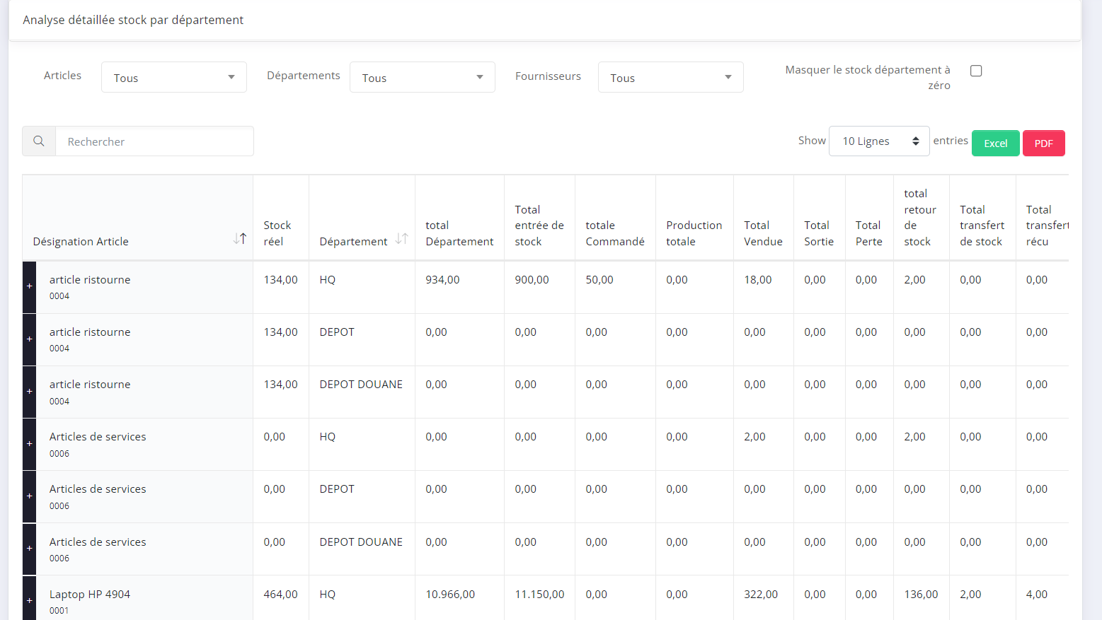 - Step 1: Vous pouvez voir l' Analyse détaillée des stock par département .