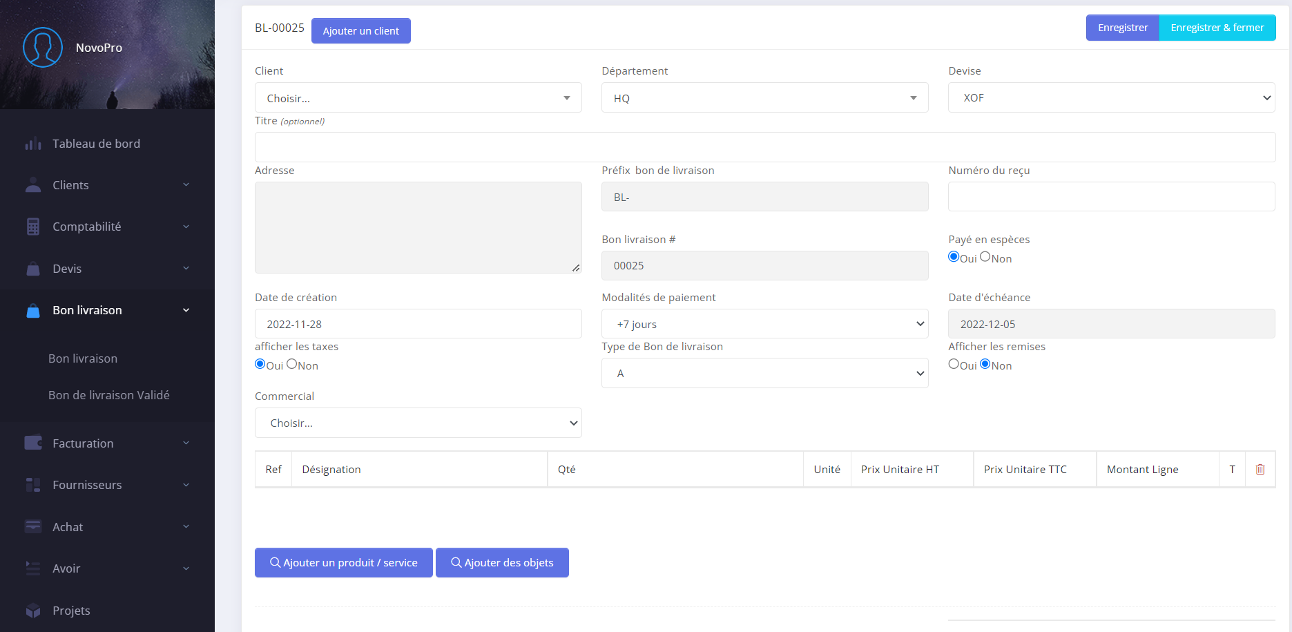 - Step 6: vous pouvez faire un bon de livraison .