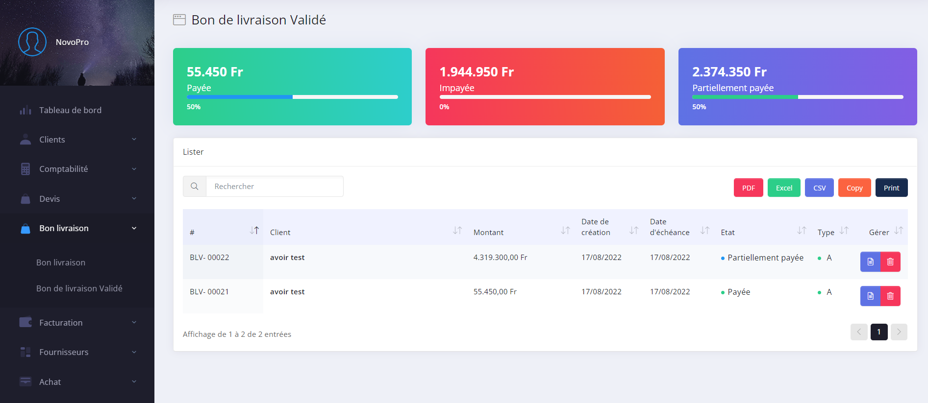 6.1. Bon de livraison validé