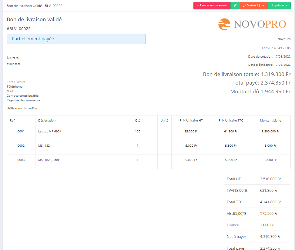- Step 5: vous pouvez ajoutez un paiement a votre bon de livraison validé.