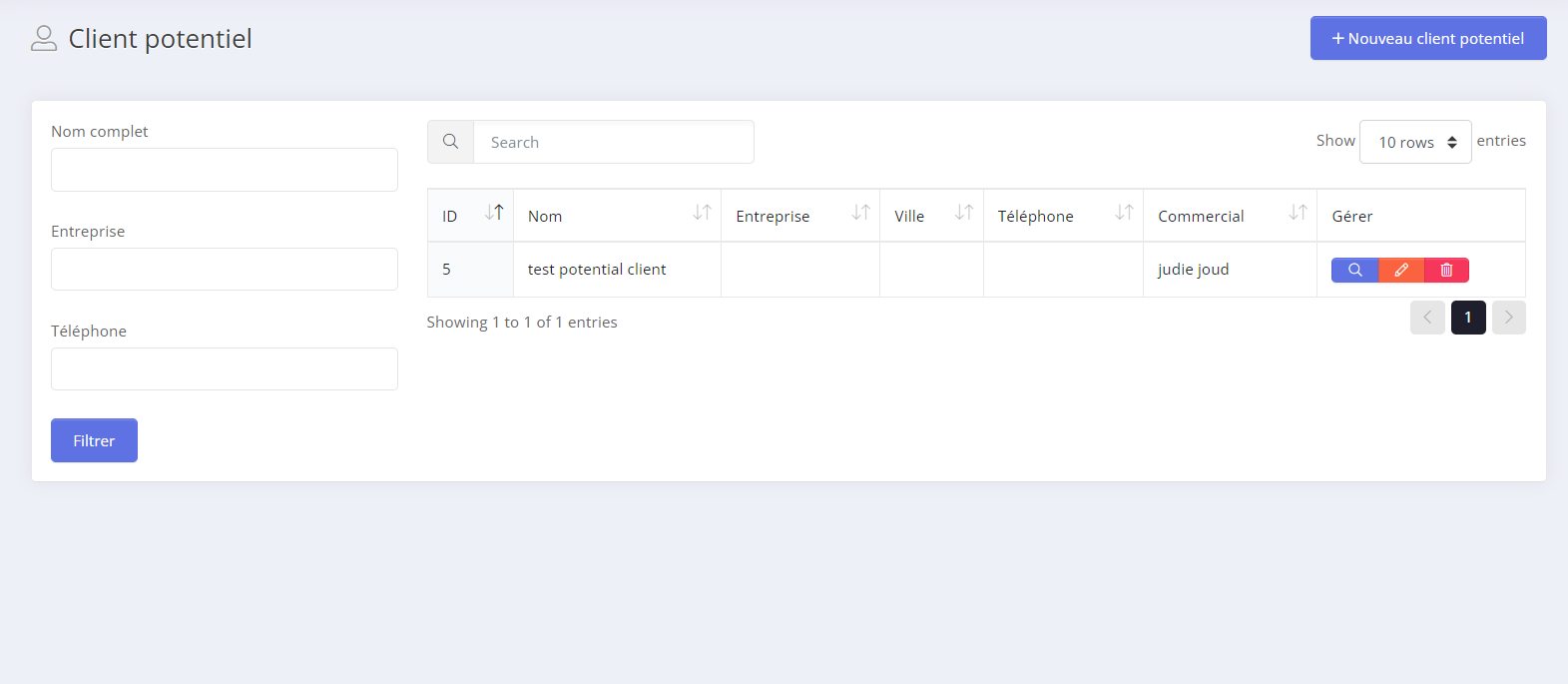 - Step 2: Pour rechercher un client il faudra simplement cliquer sur rechercher.