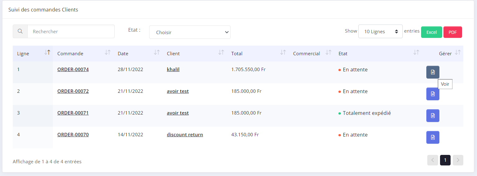 - Step 1:Suivie des commandes client → voir