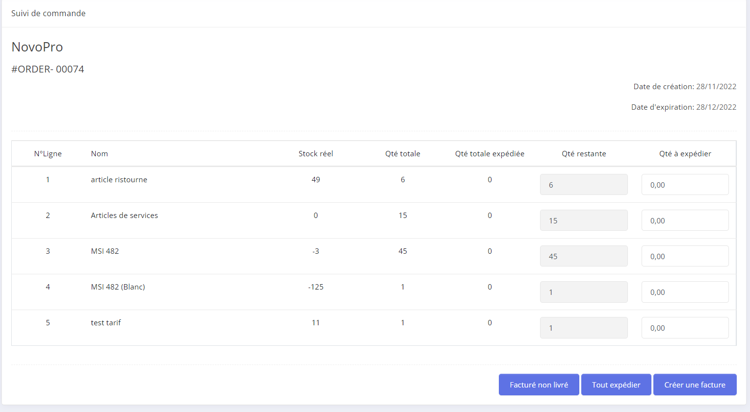 - Step 3: il vous est possible d'expedier directement tout les articles et quantités demander préalablement.