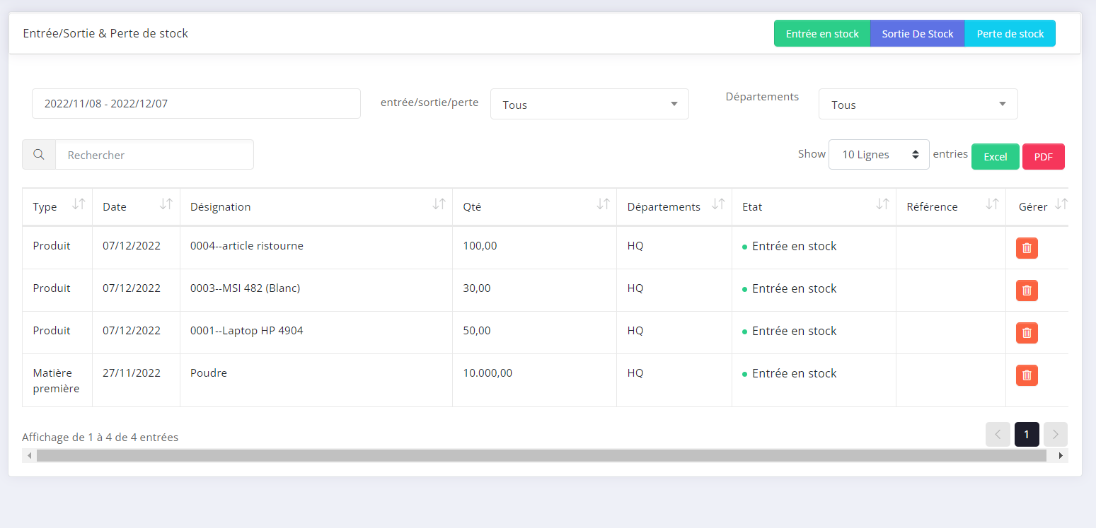 13.3. Entré/Sortie et perte de stock