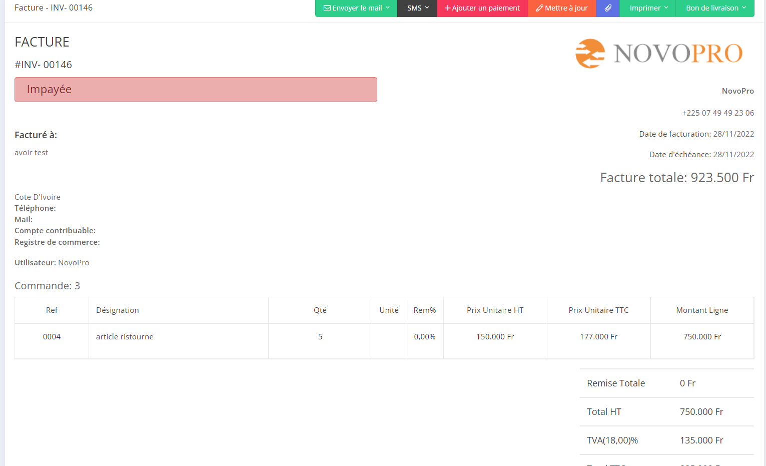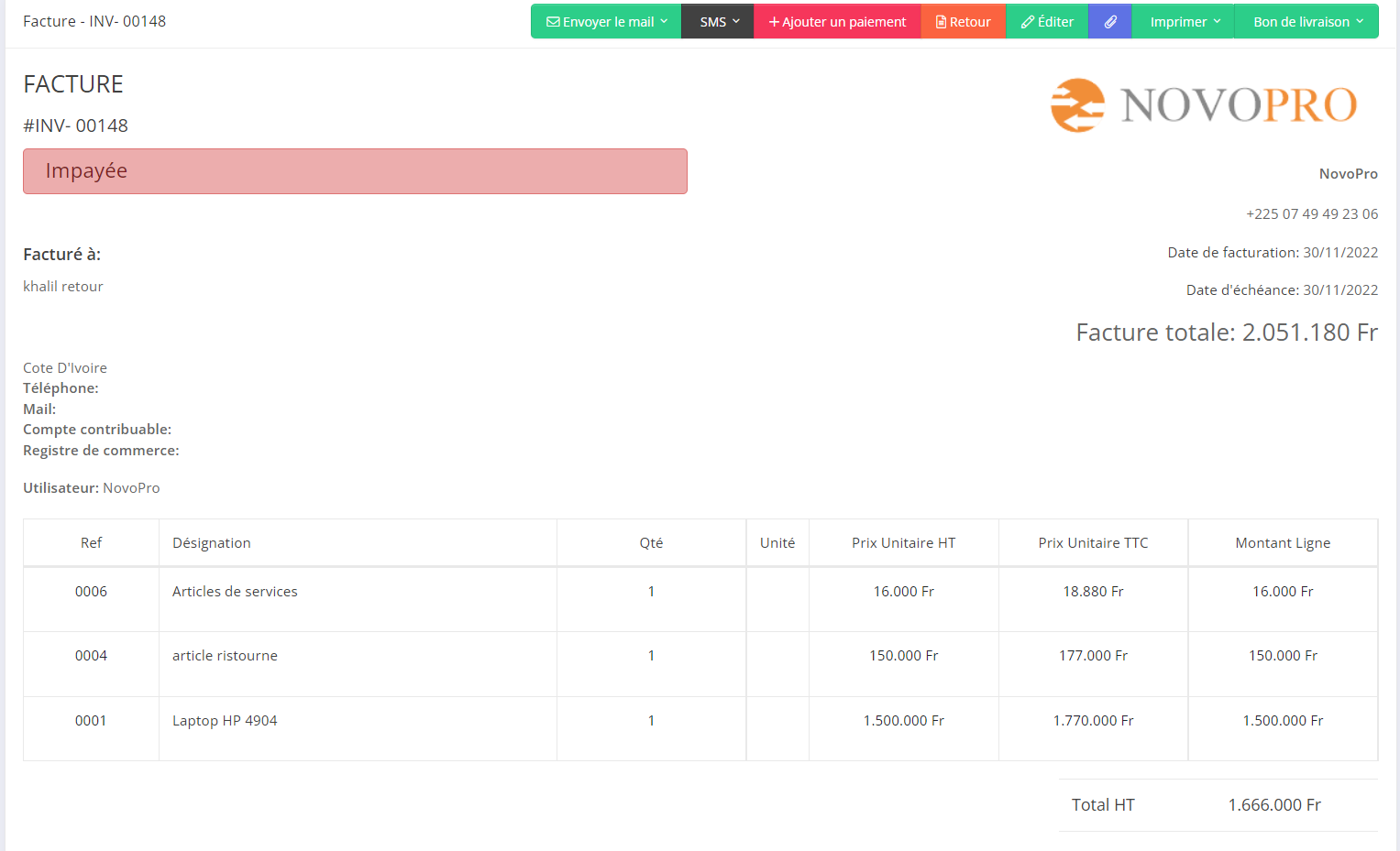 La création d'une facture est l'une des choses les plus courantes que vous faites dans Novopro, et Novopro facilite la création et l'envoi de factures.