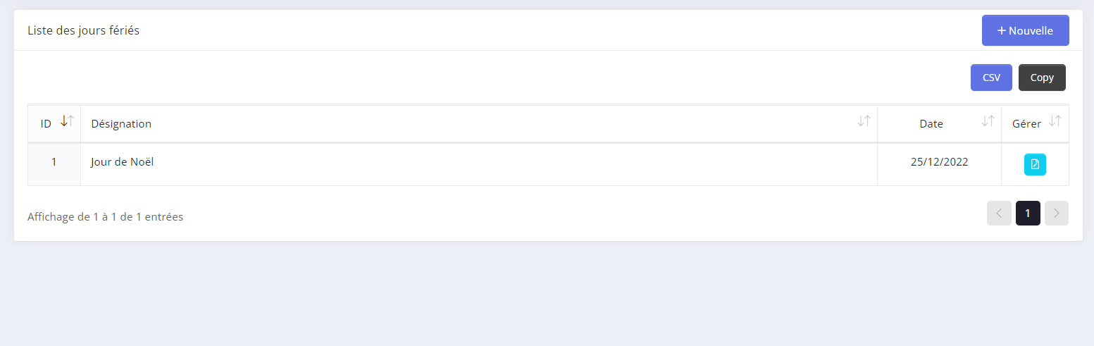 - La liste des jours feriés accordé par votre entreprise se trouvent donc ici.