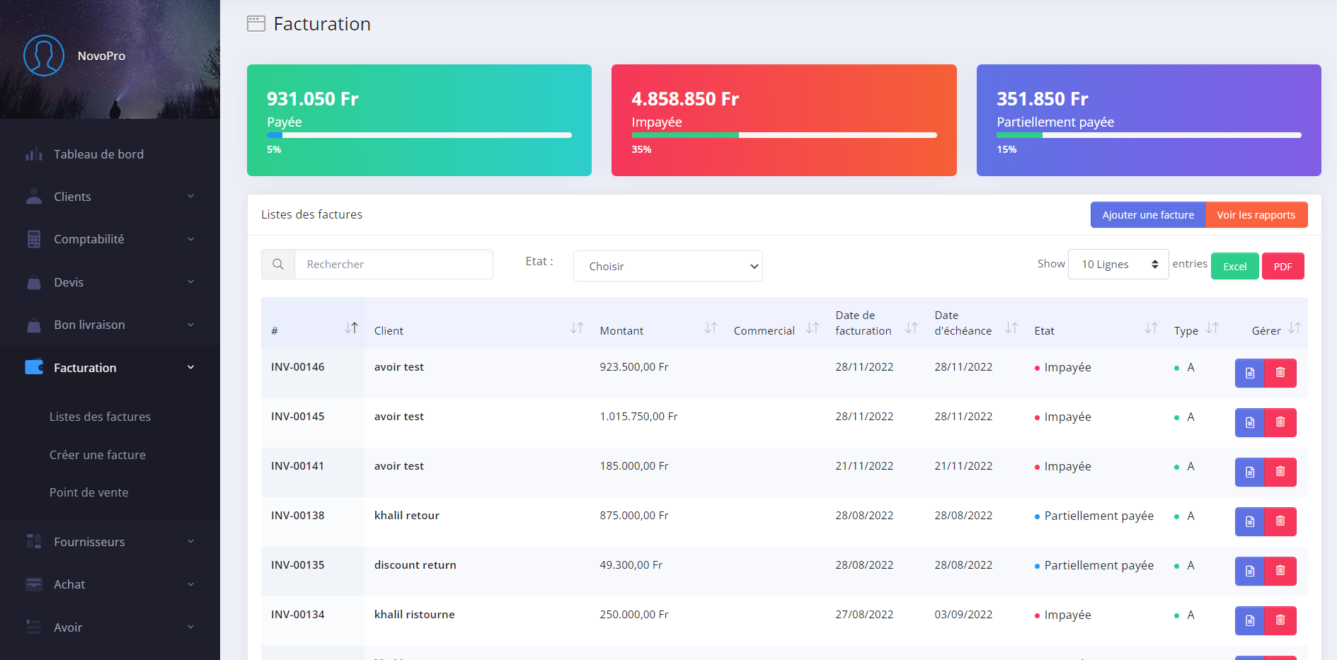 NOVOPRO a réaliser une multitude de rapports et d'analyses qui vous permetront un suivi détaillé et extremement complet de toutes les données,transactions,mouvements et gestions de votre entreprise .