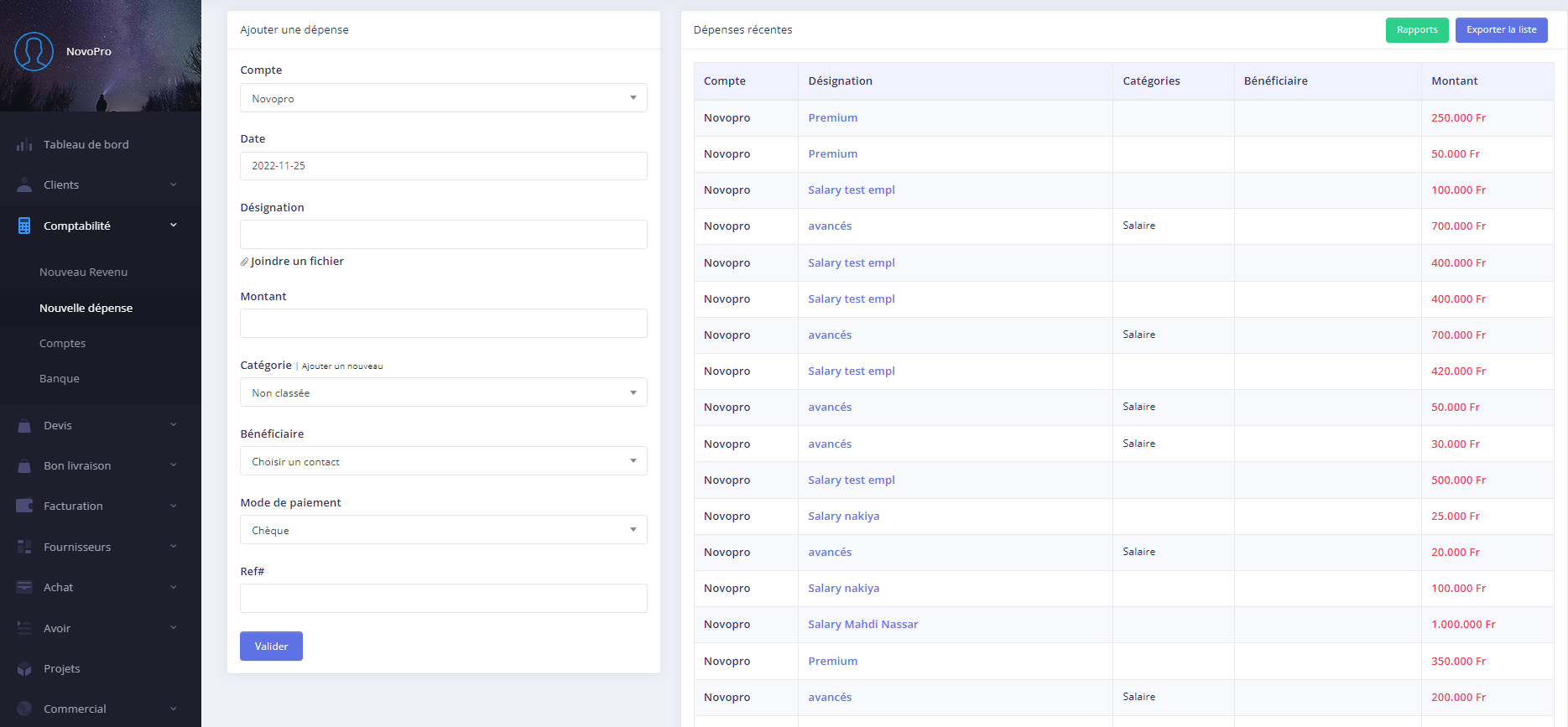 - Step 1:Aller à Comptabilité → Nouvelle depense
