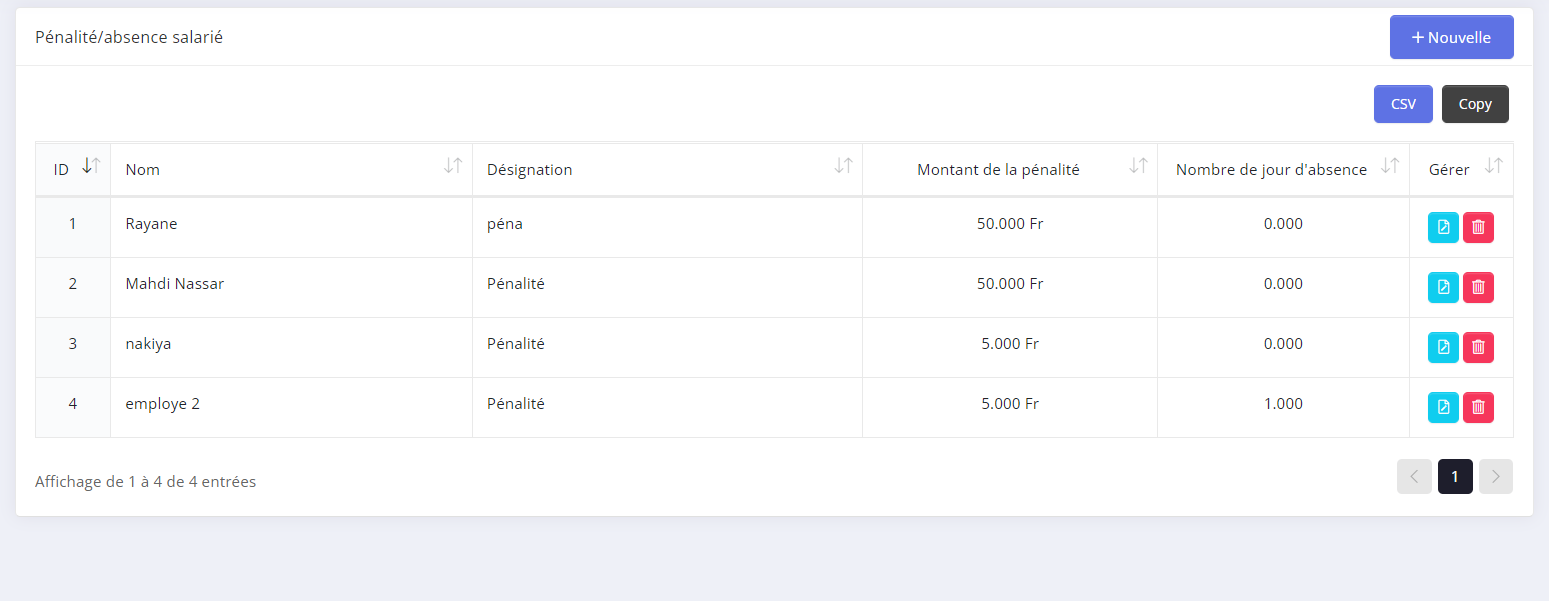 - Step 1: pour ajouter une nouvelle penalités et/ou une nouvelle absence salarié.