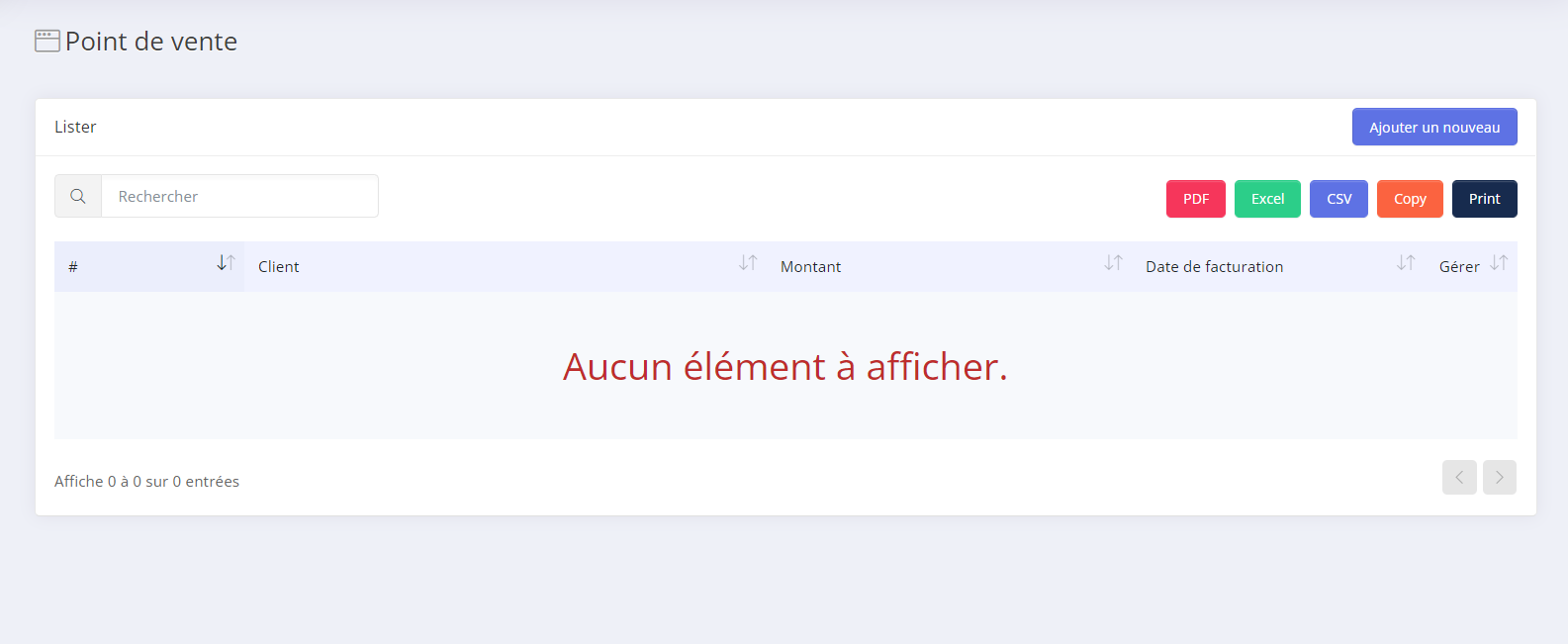 Il est facile d'afficher, de modifier ou de supprimer une facture. Cela commence par cliquer sur Facturation → liste des factures .