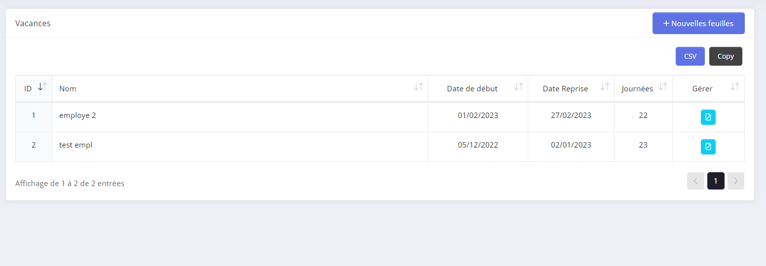 - Step 1: Ici vous aurez la possibilitée d'enregistrer les demandes de vacance de vos employer et leur dates.